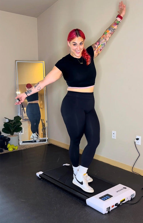 Ob beim Arbeiten oder beim Fernsehen – dieses leichte Laufband ermöglicht es Ihnen, aktiv zu bleiben, ohne zusätzlichen Platz zu benötigen. Das platzsparende Design und der leise Betrieb machen es ideal für kleine Räume und geteilte Umgebungen und helfen Ihnen, Fitness ganz einfach in Ihre tägliche Routine zu integrieren.