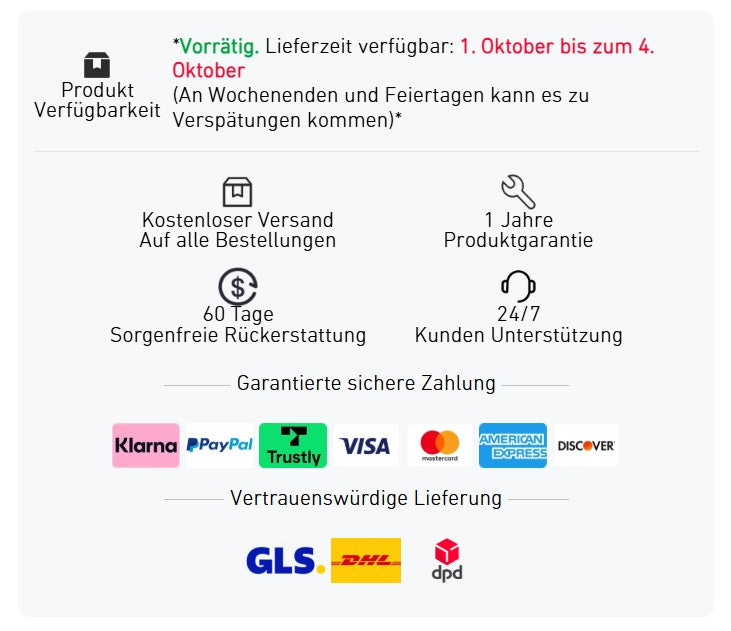 Kein Zusammenbau erforderlich, sofort einsatzbereit